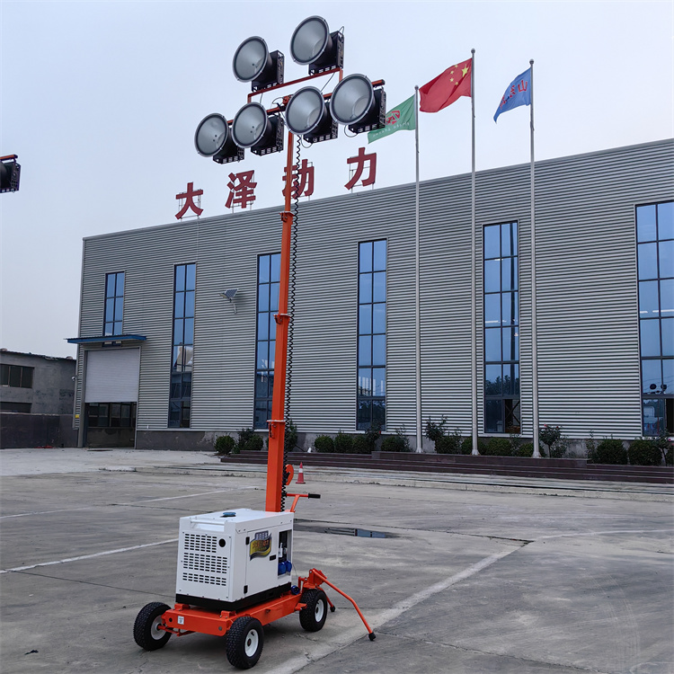 描述:柴油發(fā)電機(jī)照明燈車是一種集發(fā)電與照明功能于一體的移動(dòng)設(shè)備,廣泛應(yīng)用于夜間施工、搶險(xiǎn)救災(zāi)、道路維護(hù)等場(chǎng)景。以下是其主要特點(diǎn)和市場(chǎng)信息:請(qǐng)認(rèn)準(zhǔn);大澤動(dòng)力官網(wǎng)核心功能與配置?多燈頭設(shè)計(jì)?:通常配備4-6個(gè)燈頭,單燈功率可達(dá)400瓦,支持220V電···