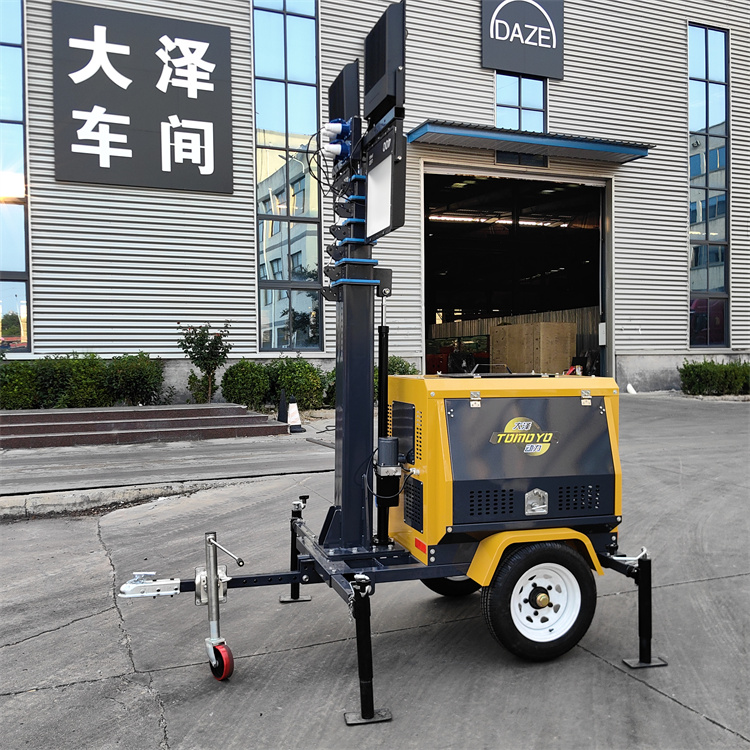 描述:柴油發(fā)電機(jī)照明燈車是一種集發(fā)電與照明功能于一體的移動(dòng)設(shè)備,廣泛應(yīng)用于夜間施工、搶險(xiǎn)救災(zāi)、道路維護(hù)等場(chǎng)景。以下是其主要特點(diǎn)和市場(chǎng)信息:請(qǐng)認(rèn)準(zhǔn);大澤動(dòng)力官網(wǎng)核心功能與配置?多燈頭設(shè)計(jì)?:通常配備4-6個(gè)燈頭,單燈功率可達(dá)400瓦,支持220V電···